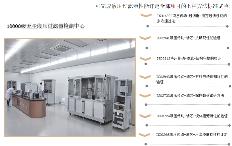 精良的成型加工設(shè)備、自動化的濾芯生產(chǎn)線及10000級無塵液壓過濾器檢測中心。從產(chǎn)品的鑄造毛坯開始至完成每一件產(chǎn)成品,我們嚴(yán)格認(rèn)真的把控著產(chǎn)品質(zhì)量,以滿足液壓系統(tǒng)最嚴(yán)格的潔凈標(biāo)準(zhǔn),所有的產(chǎn)品生產(chǎn)都符合ISO國際標(biāo)準(zhǔn)。