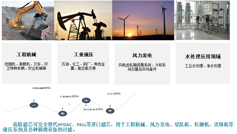訊聯(lián)液壓主要致力于流體動力工業(yè),我們可為用戶設(shè)計、開發(fā)和制造全系列液壓用過濾器、濾芯以及液壓過濾系統(tǒng)成套解決方案。包括液壓過濾器及液壓附件、工業(yè)液壓系統(tǒng)定制、風(fēng)電齒輪箱潤滑系統(tǒng)與冷卻系統(tǒng)等。